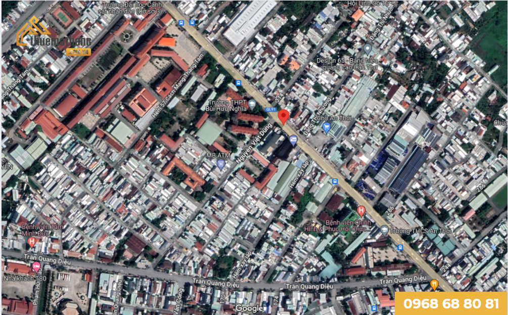 Vị trí văn phòng Cần Thơ cho thuê trên đường Cách Mạng Tháng Tám.