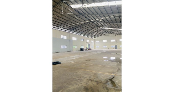 - Diện tích 600 m², nền bê tông chịu tải cao, mái cao thoáng giúp lưu thông không khí tốt.