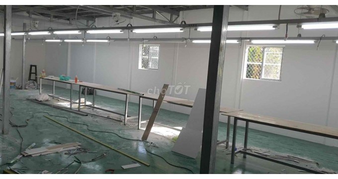 - Không gian làm việc rộng rãi: Kho xưởng có diện tích 1,100 m², phù hợp với nhiều mô hình sản xuất, lưu trữ và các hoạt động logistics.