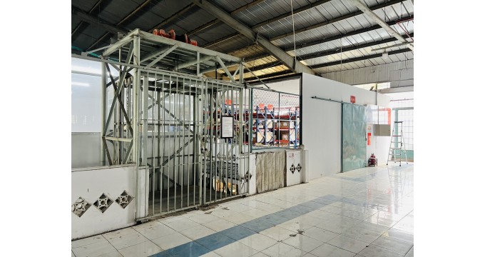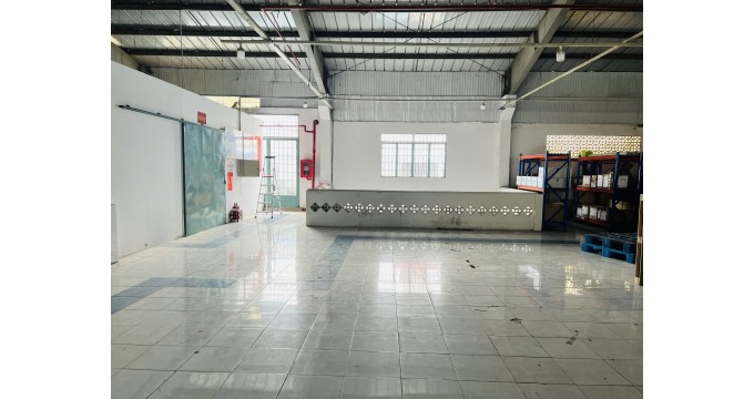 Khuôn viên 4200m², sử dụng 3.657m² xưởng 1 trệt, 1 lầu, nền gạch men.