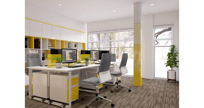 Văn phòng sạch đẹp, có view hướng ra mặt đường lấy ánh sáng tự nhiên.