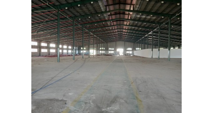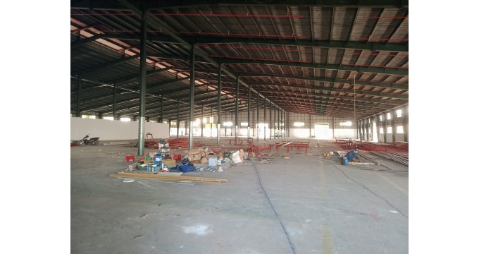 - Nhà xưởng chiếm một nửa, còn lại là đường nội bộ 12m, sân tập kết xe tải và container, xe có thể vào tới tận xưởng 24/7